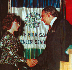Türkiye Gıda Sanayii İş Verenleri Sendikası'nda 10 yıl ve daha fazla görev yapanlara, Sn. Nazım Düzenli tarafından verilen plaket kızı tarafından alınmıştır.